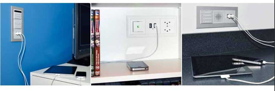 Устройство USB розетки как визуально так и технически полностью совместимо с универсальным стандартом электроустановочного оборудования, она идеально интегрируется в существующую электросеть квартиры, при этом как уже была сказано в высшей степени энергоэффективна. Встроенный блок питания автоматически обеспечивает требуемый ток зарядки, за счет этого достигается совместимость с большинством устройств. При этом USB разъем выдает постоянный ток 700мА напряжением 5В и имеет удивительно низкое энергопотребление в режиме ожидания.