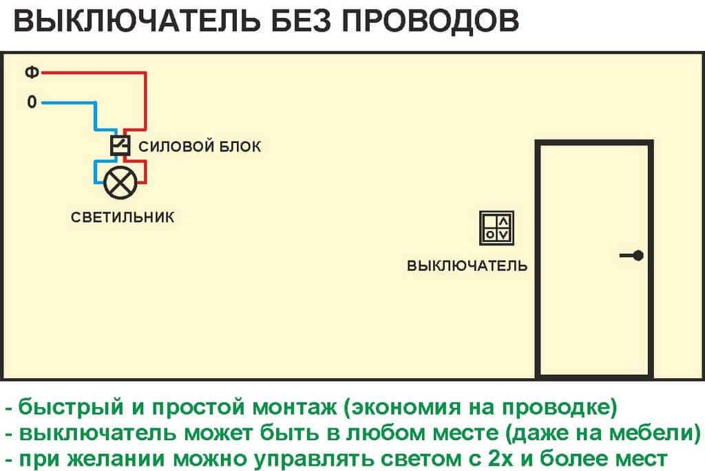 Для того чтобы правильно смонтировать выключатель, необходимо знать его принцип работы, из чего состоит устройство и как подключить Wi-fi выключатель. Схема подключения данного беспроводного устройства очень проста.