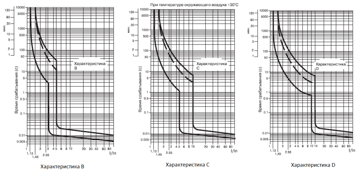 Эти автоматические выключатели, кроме тока, характеризуются буквами “B”, “C” и “D”, показывающими дополнительные параметры: