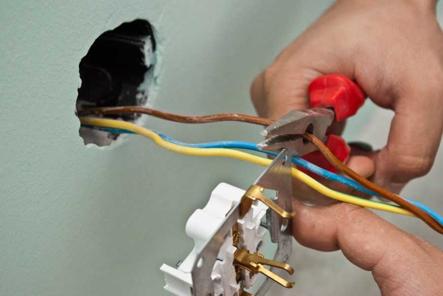 Теперь нужно при помощи ножа оголить провода в подрозетнике на 10 мм.