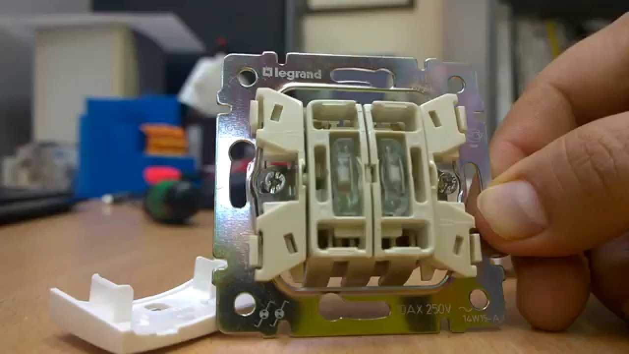 Ослабить крепления, отсоединить провода.. По окончании манипуляций на руках остается внутренность демонтированного выключателя