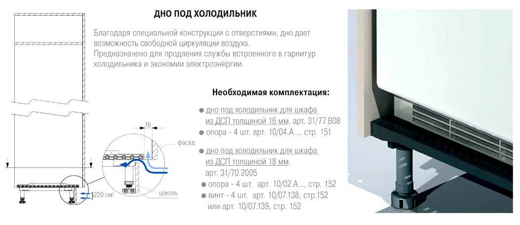 холодильником. В отличие от обычного холодильника, который стоит на полу, встроенный устанавливается на