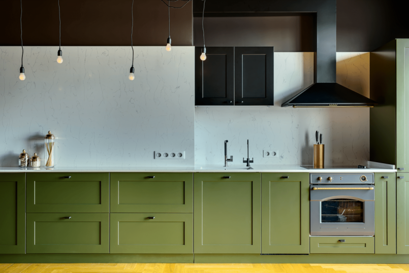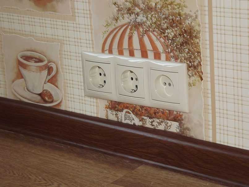 Категорически запрещено размещать розетки над мойкой или электроплитой, а также внутри шкафов с выдвижными ящиками или за корпусами встраиваемой техники. Также не разрешается использовать на кухне провода с однослойной изоляцией. Поскольку на кухне повышенный уровень влажности, изоляция проводов должно быть двойной.