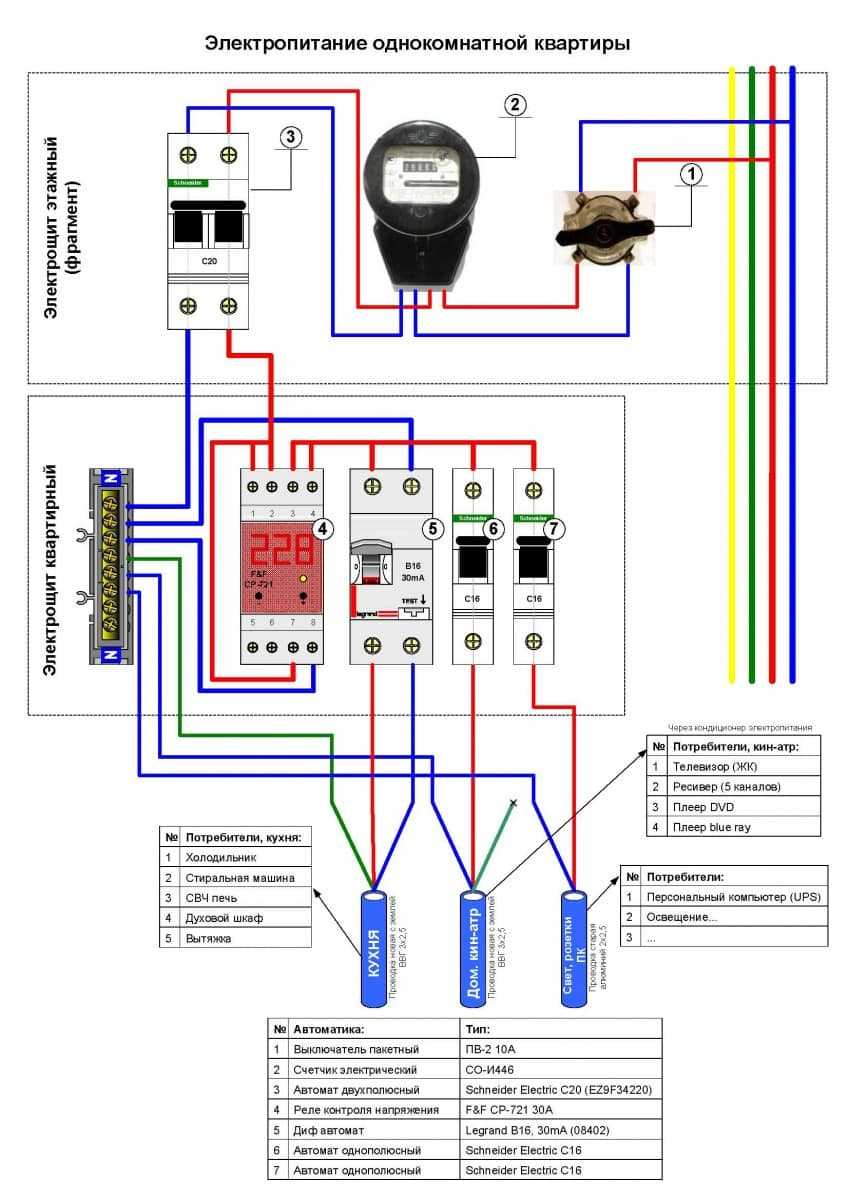 На рисунке 4 показан пример схемы электропроводки в однокомнатной квартире, наглядно демонстрирующий принцип подключения пакетного выключателя.