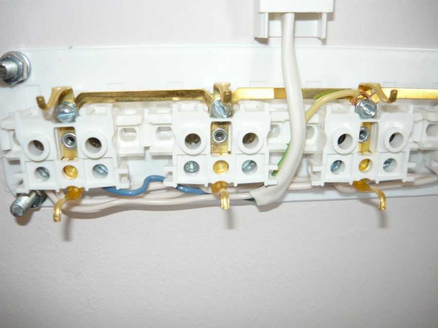 - Утапливаем отверткой прижимные коннекторы на клеммнике. Фиксируем каждую жилу в группе клемм. Провода должны находиться примерно на одном расстоянии от основания клеммника.