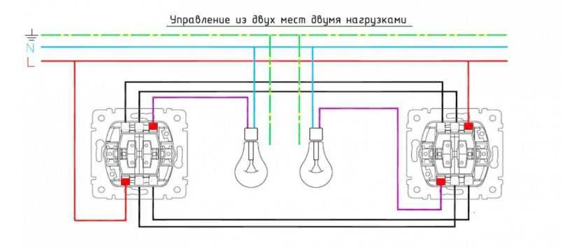 Схема подключения двух лампочек