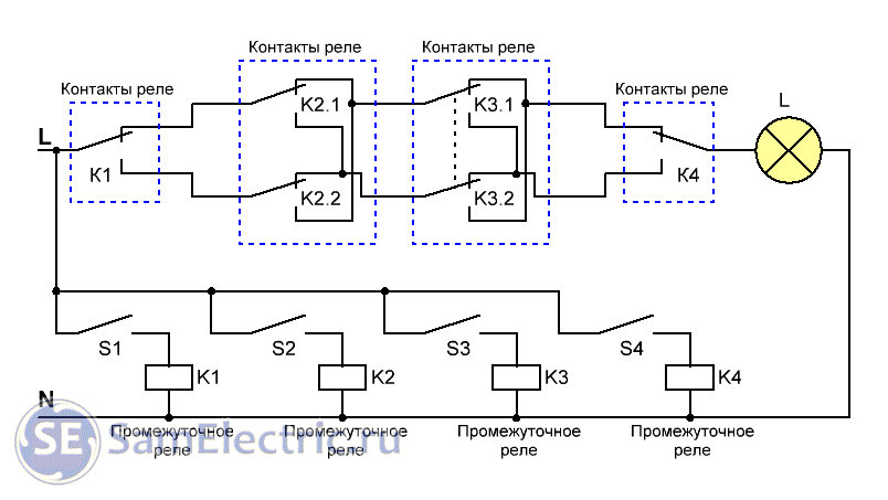 Управление светом с нескольких мест при помощи промежуточных реле