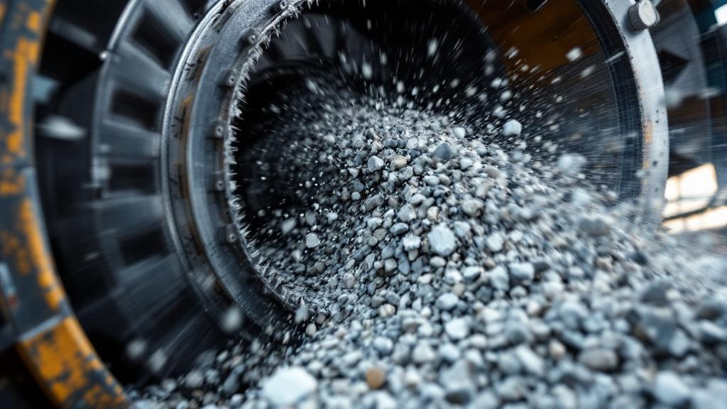 Принцип действия молотковой дробилки основан на ударном воздействии вращающихся молотков на материал, поступающий в рабочую камеру. Под действием центробежной силы и инерции частицы разрушаются при соударении с молотками, броневыми плитами и друг с другом. Такая схема обеспечивает высокую эффективность при дроблении хрупких, волокнистых и среднеабразивных материалов с возможностью тонкой настройки выходной фракции за счет регулировки зазора между ротором и колосниковой решеткой.