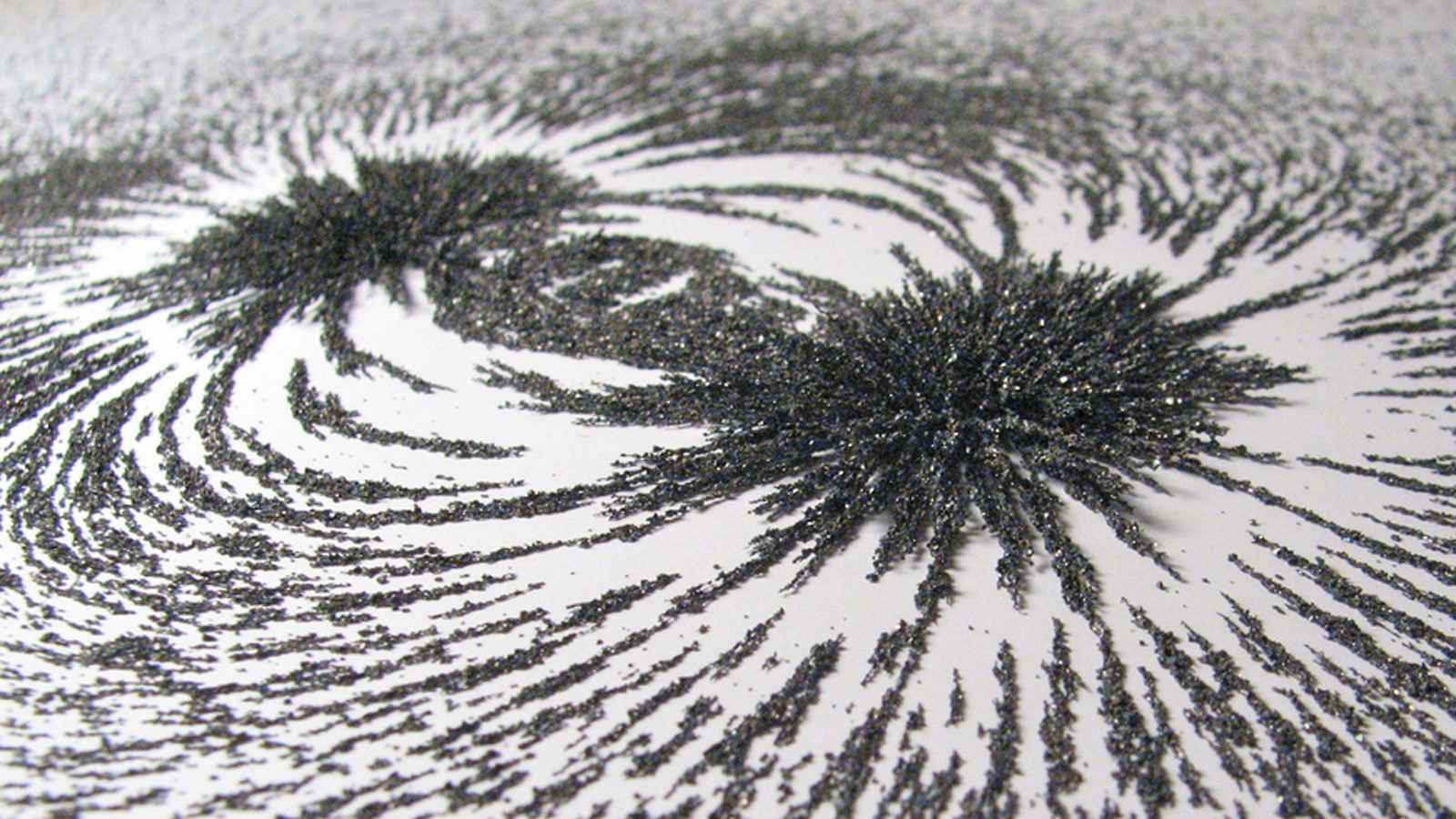 Так оказалась изображена первая картина электрического поля. Напоминает картину, как исследователи представляли магнитное, но с гигантской разницей: в природе нашлись заряды обоих знаков. Линии напряжённости уходят в бесконечность (в теории, безусловно, закончатся). А магнитные заряды поодиночке не найдены, линии их всегда замыкаются в видимой области пространства.
