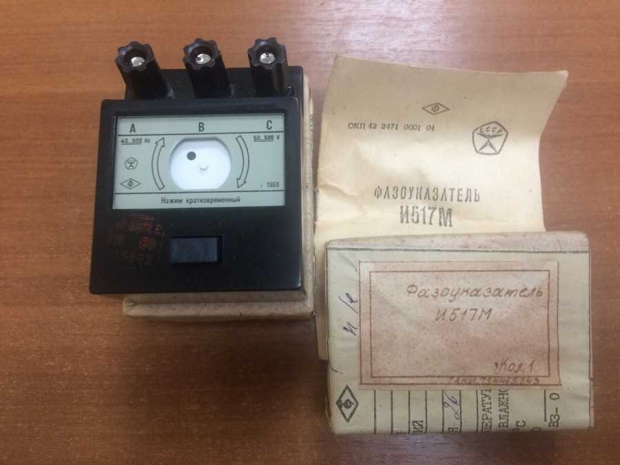 Фазоуказатели бывают нескольких видов. Самым стандартным бытовым прибором, пригодным для многих случаев является И517М. По большому счету этот прибор является асинхронным двигателем поддерживающий до трех фаз.