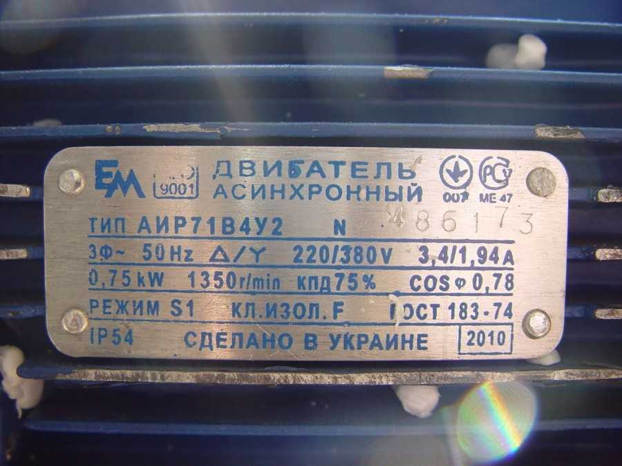 На корпусе любого заводского двигателя имеется металлическая бирка, на которой указаны все характеристики. На практике такая бирка может отсутствовать или стереться, что немного усложняет задачу определения числа оборотов.