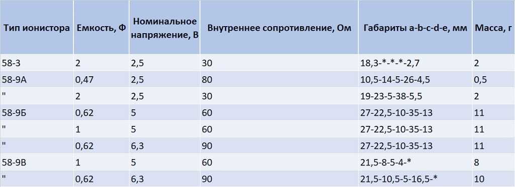 Ионисторы отличаются следующими характеристиками: