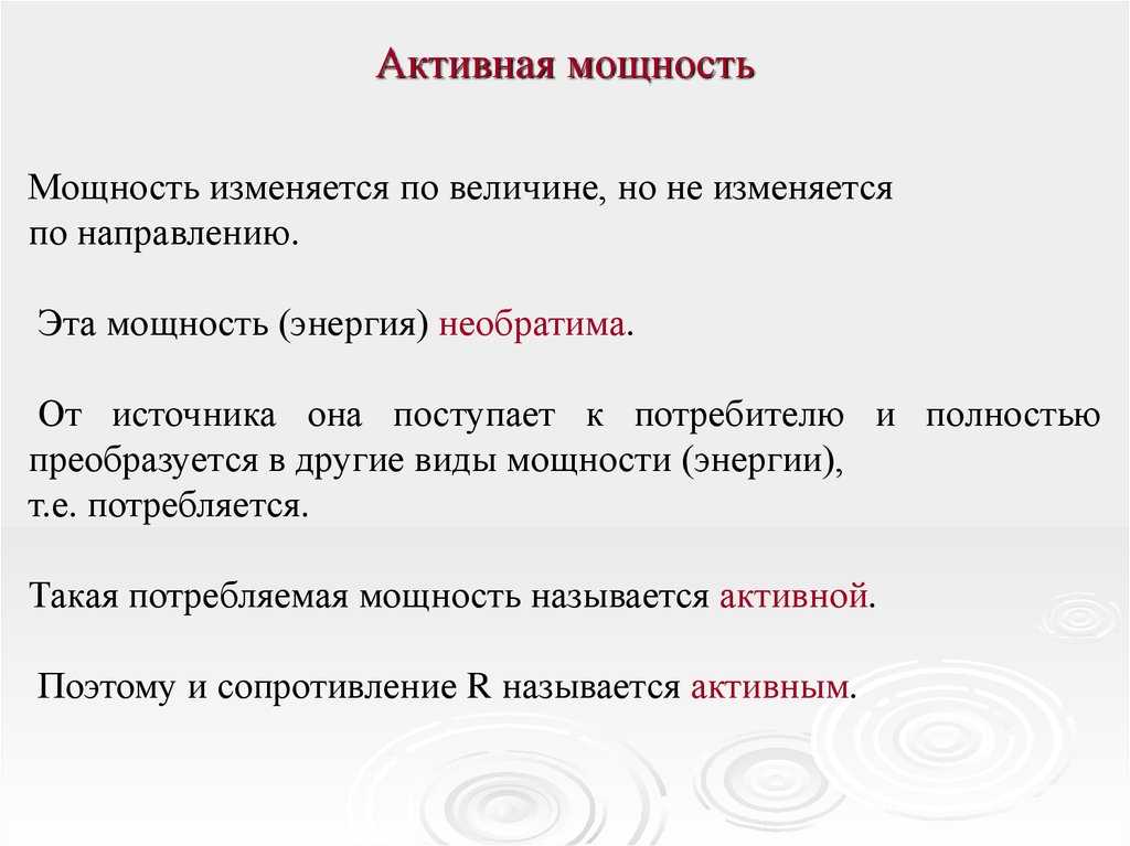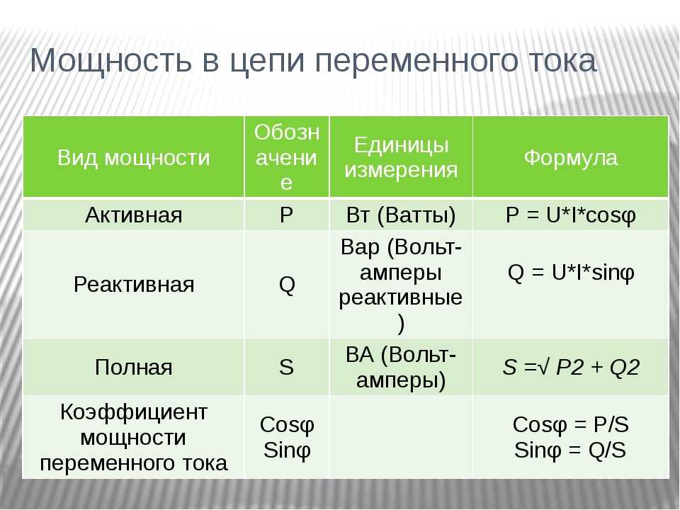 Полная — это сумма активной с реактивной мощностью. Равна сетевому мощностному показателю. Это произведение напряжения с током в момент игнорирования фазы угла между ними. Вся рассеиваемая с поглощаемой и возвращаемой энергией — это полная энергия.