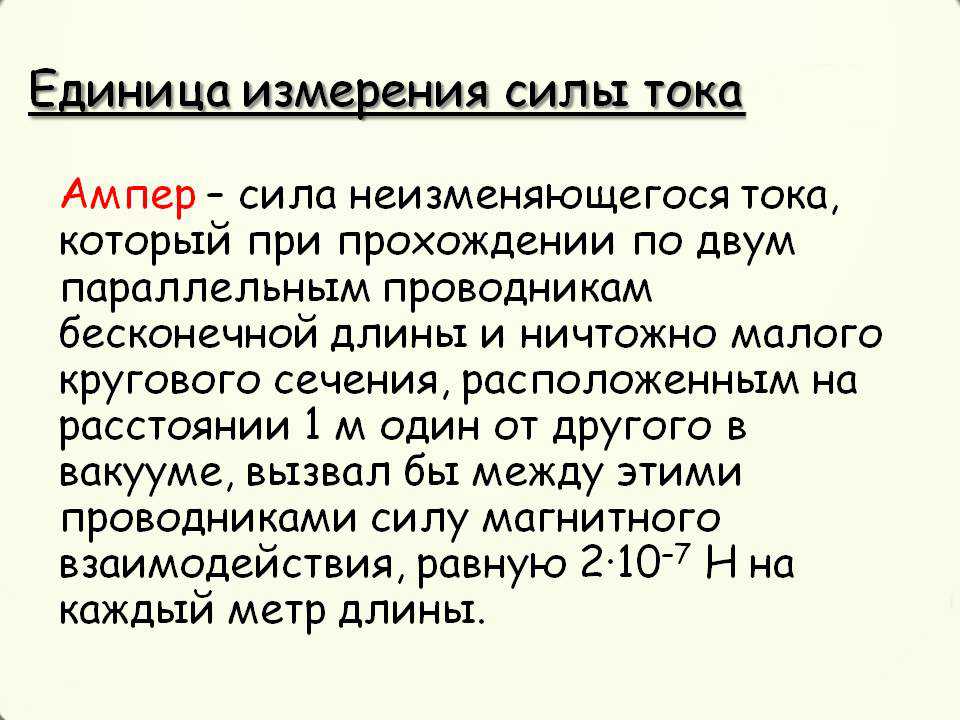 Сила тока измеряется в амперах – обозначение А. Ампер – одна из семи основных единиц.