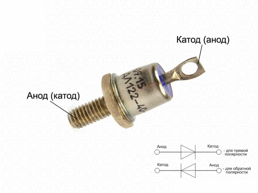 1) на некоторых диодах катод обозначают полоской, отличающейся от цвета корпуса