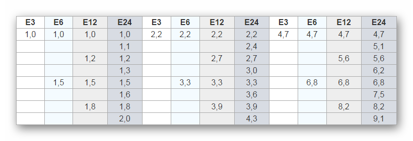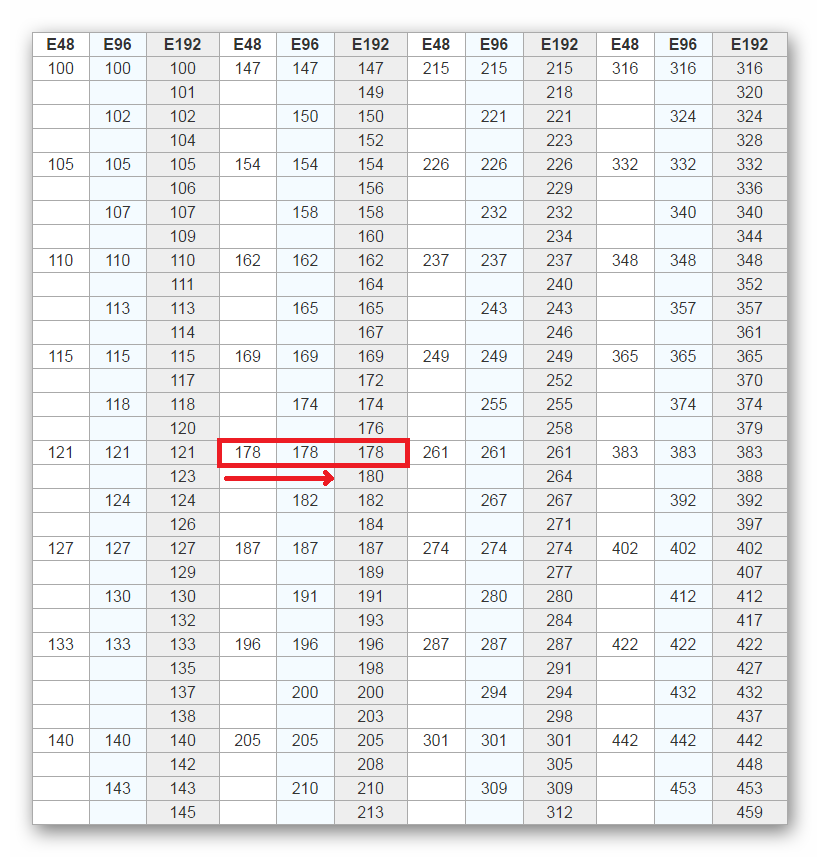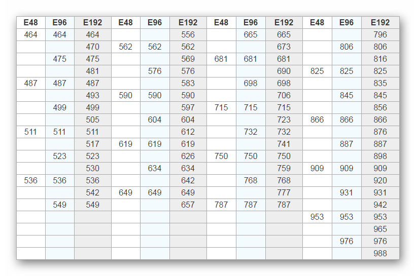 Таблица подбора резистора с максимально приближенным значением сопротивления
