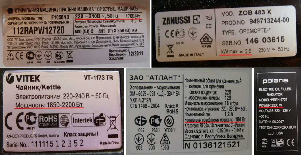 Информация на электроприборе может быть обозначена по-разному