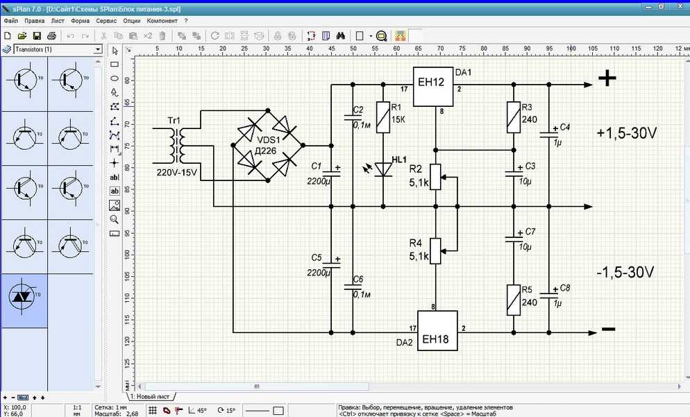 Здесь есть режим добавления компонентов. При обработке изображений можно изменять размеры, пользоваться координатной сеткой. Ограниченный набор шрифтов не позволит выполнить все требования отечественного ГОСТа. Впрочем, для создания радио своими руками в домашних условиях такие функции не обязательны.