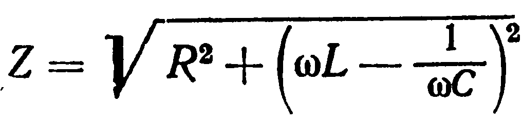 I = U/Z = U/ √ R2 + (2π * w * L – 1/2π * w * C)2.