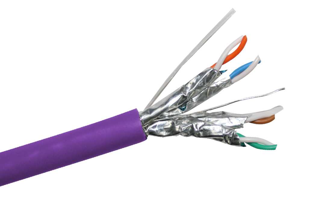 - CAT7 (частотная полоса 600 — 700 МГц. Класс «F»). Поддерживает скорость передачи данных до 10 Гбит/с. Структура кабеля имеет общий внешний экран и фольгированную защиту каждой пары. По типу относиться к S/FTP (ScreenedFullyShieldedTwistedPair).