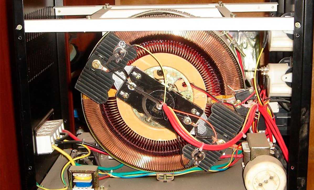 Принцип действия этих моделей понятен из специфического названия. Для точной коррекции выходного напряжения плавно изменяют параметры вторичной обмотки с применением движущегося контакта. Ползунок перемещают с помощью электромеханического привода. Главный плюс – сохранение работоспособности при высокой нагрузке. Если производитель использовал качественные компоненты, можно рассчитывать на длительный срок службы без поломок