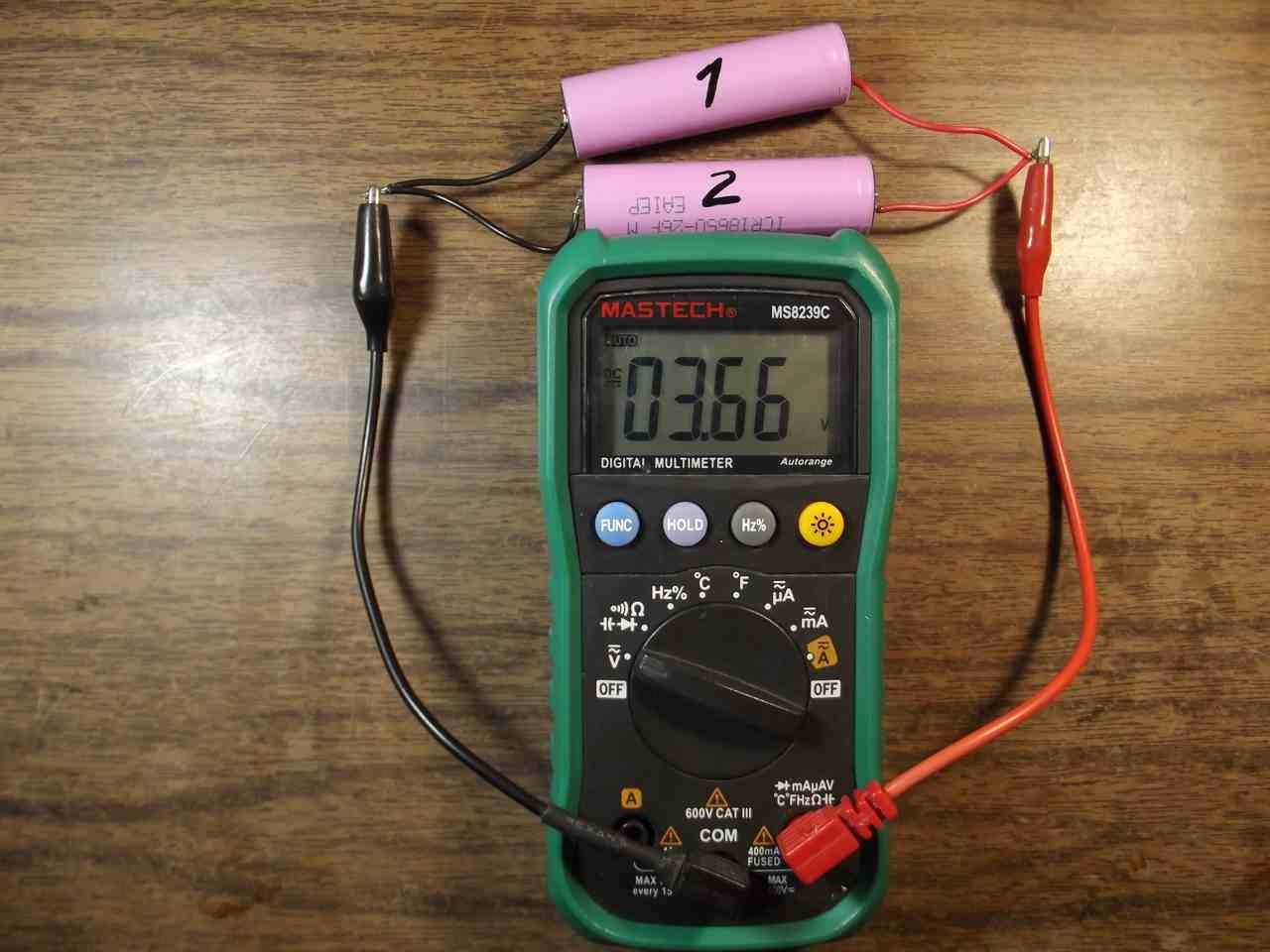 Настало время все это рассмотреть на реальном примере. Итак, замеры мы уже делали. Осталось соединить два источника питания параллельно, в нашем случае это аккумуляторы li-ion: