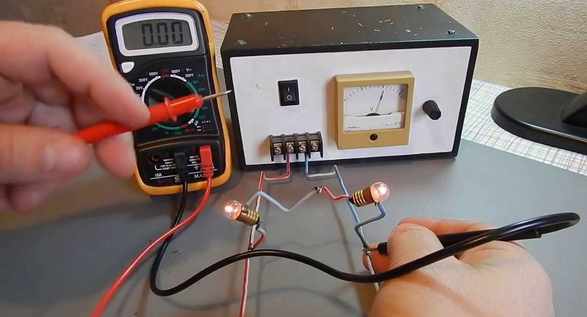 Причем тут совершенно нельзя допускать прямого контакта с выводами тока либо источником питания. В противном случае устройство сломается либо произойдет короткое замыкание. А при работе с вольтметром такой контакт допускается. И метод подключения здесь будет не последовательным, а параллельным.