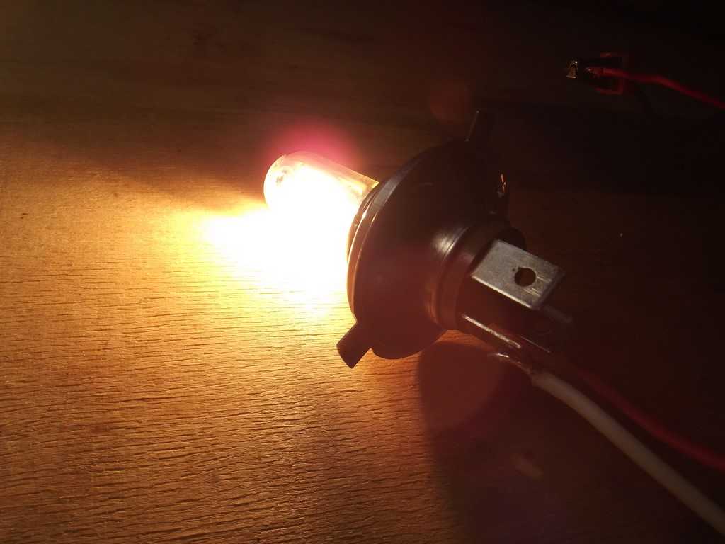 Беру галогенную лампу от фары авто и также цепляю ее к блоку питания