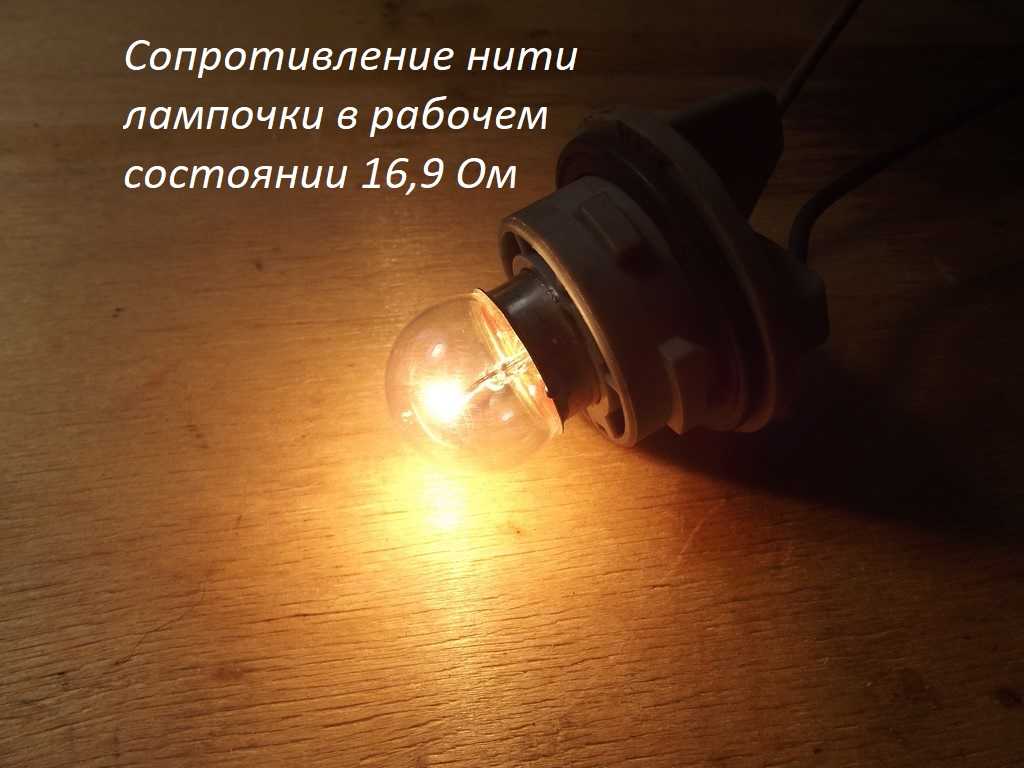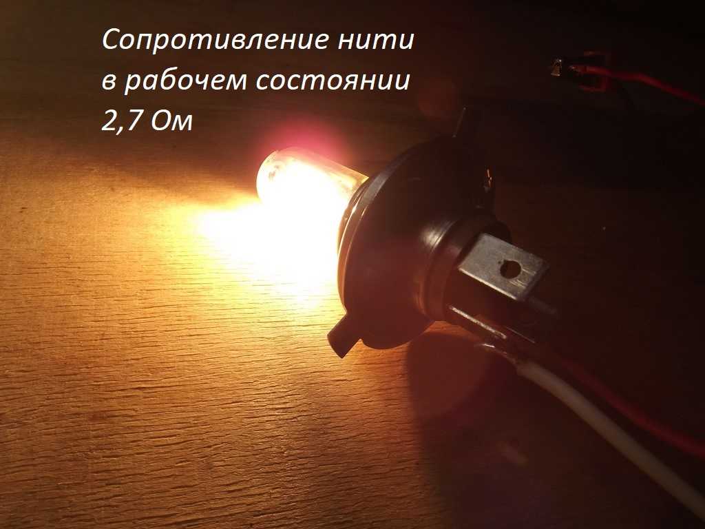 Аналогично высчитываем сопротивление нити лампы. R=U/I=12/4,42=2,7 Ом.