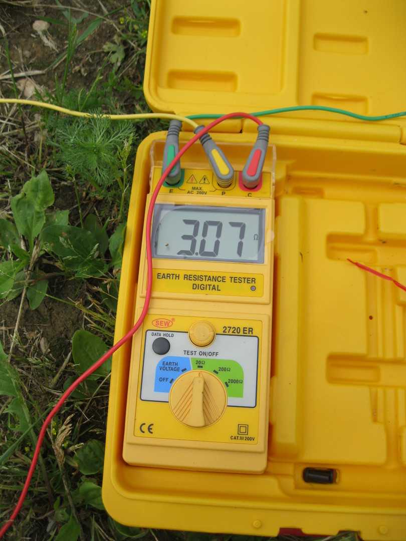 Измерительное устройство ставят рядом с будущим контуром. Электроды ставят на расстоянии в 10 и 25 м с одной и другой стороны, соответственно, и забивают в почву. После этого подсоединяют их к устройству.