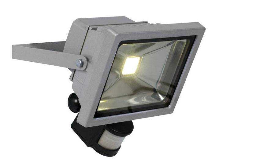 Прожектор с галогеновой лампой. В нем установлен инфракрасный датчик движения, который реагирует на излучение тепловой энергии от объекта. Дальность действия такого прибора достигает 12 м, причем функциональность его не теряется даже при отрицательных температурах, осадках, понижении температуры.