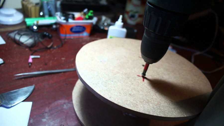Но перед этим на рукояти нужно просверлить отверстие для болта, за который будет осуществляться вращение. Должно получиться так, как показано на фото выше.