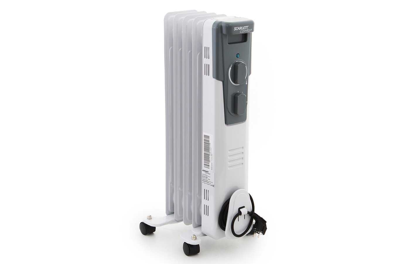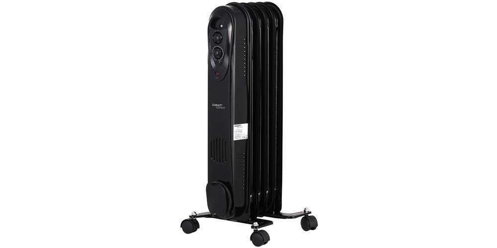 Показатель максимальной мощности в 2200 Вт остаётся практически на одном уровне с прибором Scarlett SC 21.2311 S3B. В радиаторе реализована функция механической регулировки нагрева 11 секций. Есть ручка для перемещения, колесики и выключатель со световым индикатором. Встроенный тип термостата, опция защиты от перегрева отражаются на удобстве эксплуатации. Цена — 5 тыс. руб.
