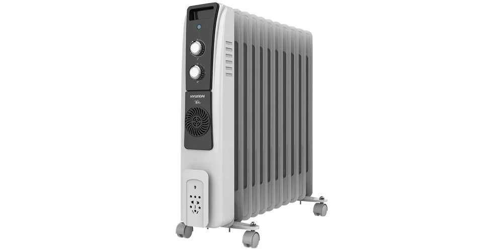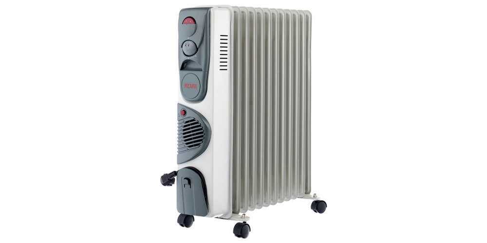 Мощность обогрева — 2900 Вт, она аналогична Hyundai H-HO8-11-UI845. 12 секций прибора хорошо прогревают помещение площадью 29 м2. В конструкции реализованы колесики, ручка, отсек для шнура, выключатель со световым индикатором. Модель работает в двух режимах с механической регулировкой температуры. Основные функции — встроенный вентилятор, защита от перегрева, термостат. Цена — 4500 руб.