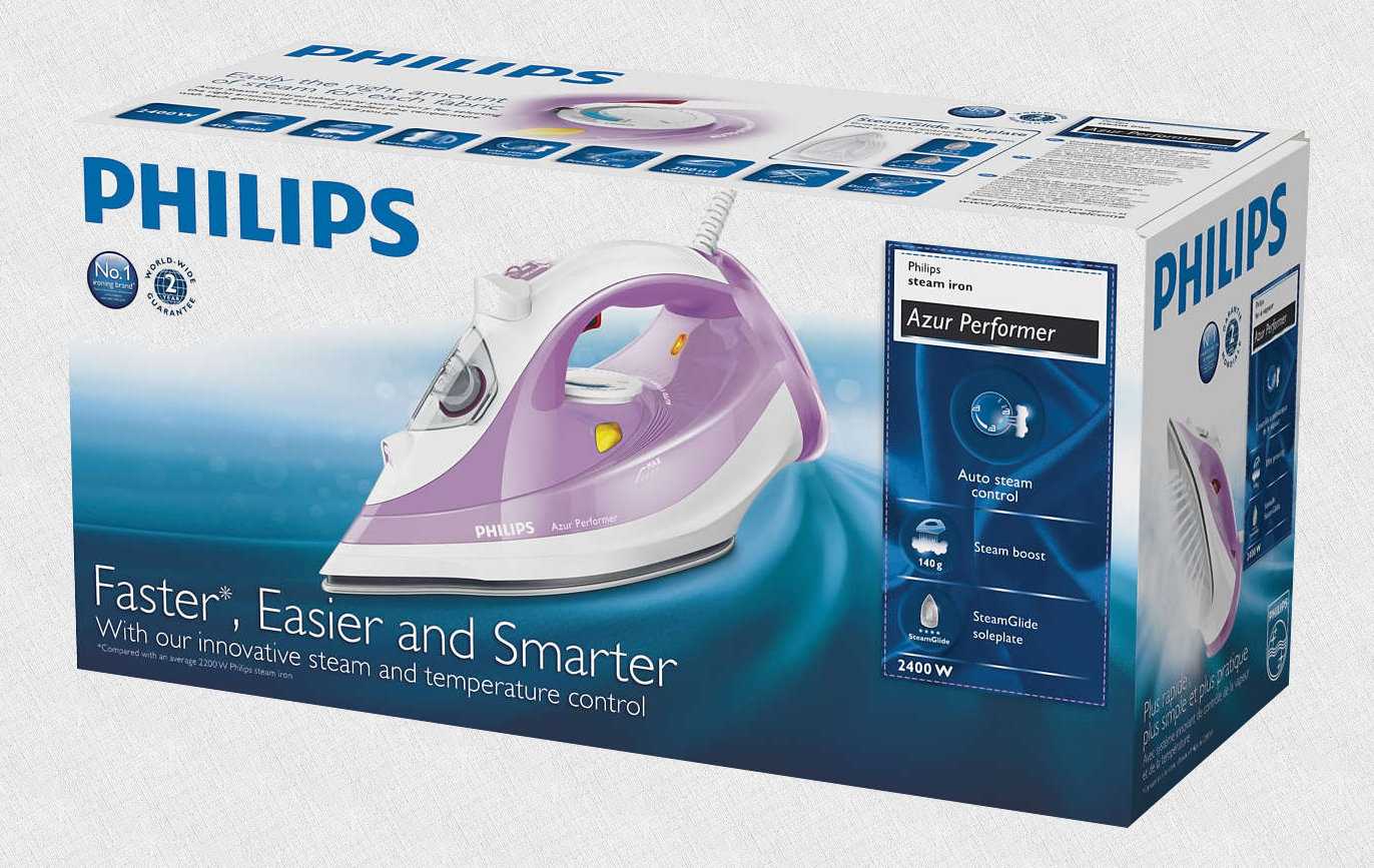 | Philips GC3803/37 Azur Performer | SteamGlide (керамическая) | 2400 | 40 | 230 | 1,38 | 3990 |