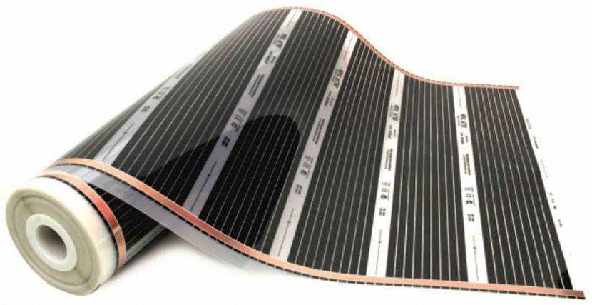 Представляет собой гибкую плёнку, с жилами из карбонового проводника. Греет такой материал всей поверхностью, так как токопроводящие полосы расположены часто и по всей площади нагревателя. Очень удобно перевозить и хранить, потому что продаётся такая плёнка маленькими рулонами. Крепится этот материал только под кровельное покрытие, поэтому использовать его можно только в случае реконструкции крыши или же в процессе строительства. Монтаж такого обогревателя стоит доверить специалистам. При возникновении местных повреждений, система обогрева не выходит из строя, но теряет эффективность. В процессе ремонта всегда есть возможность заменить повреждённый участок плёночного нагревателя. Хотелось бы отметить, что плёнка очень безопасна, она не самовоспламеняется. Равномерный прогрев поверхности даёт хорошую экономию электроэнергии.