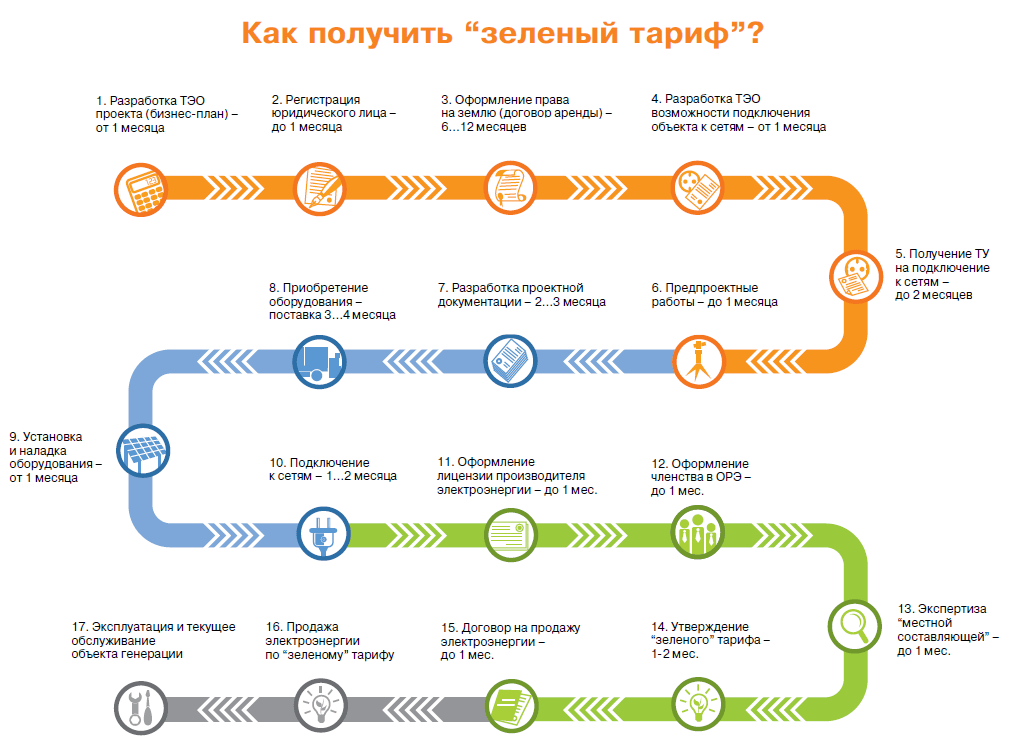 - Утверждение зеленого тарифа на продажу электроэнергии.