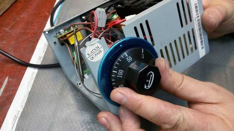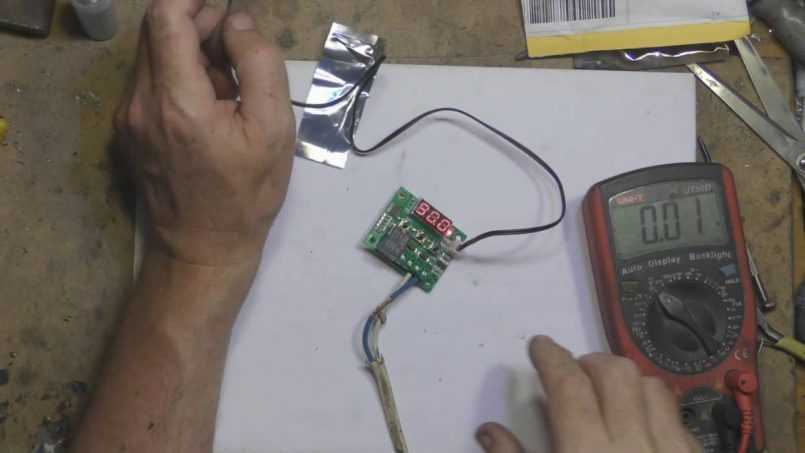 Сенсоры термометра и терморегулятора нужно соединить при помощи скотча или изоленты и помещать в среды с различной температурой. При этом каждый раз нужно постепенно менять сопротивление переменного резистора, пока устройство не сработает. В этот миг нужно зафиксировать показания цифрового термометра и сделать напротив текущего положения ручки переменного резистора соответствующую пометку.