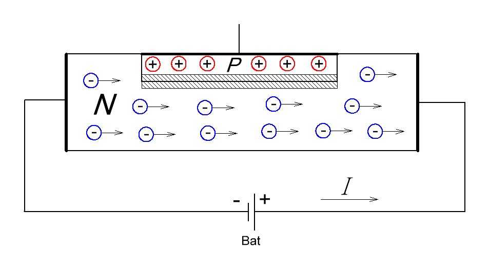 Схема полевого JFET-транзистора с управляющим PN-переходом