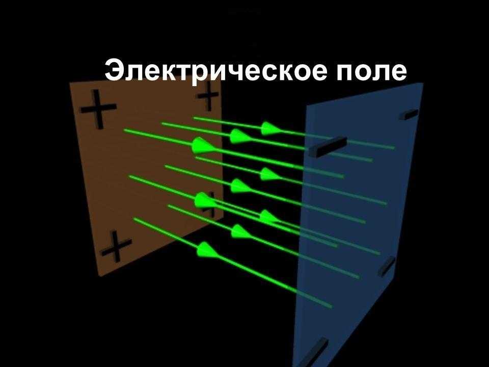 В результате, они заряжаются, и между этими двумя пластинами создается однородное электрическое поле, которое характеризуется таким параметром, как напряженность. По идее, чем больше мы подадим напряжения между пластинами, тем напряженнее стает поле между этими пластинами. Физика, 7-8 класс ![]()