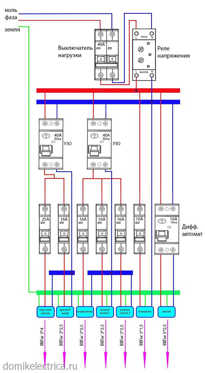 Схема электрощитка в квартире с УЗО в отдельных группах